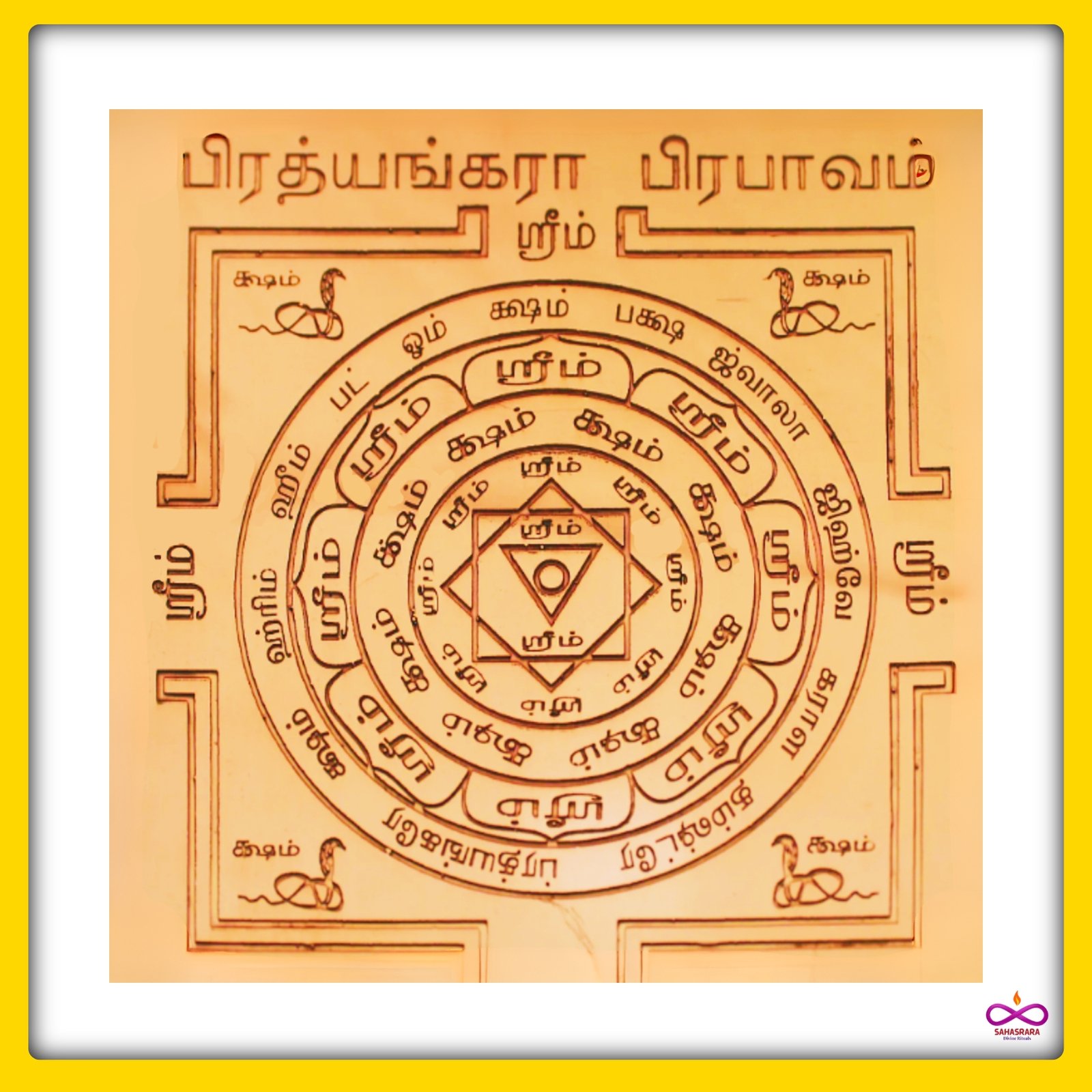 Buy Prathyangira Devi Yantra for divine protection, removal of negativity, fear, evil eye, and obstacles. Energized Yantra for spiritual strength and peace.