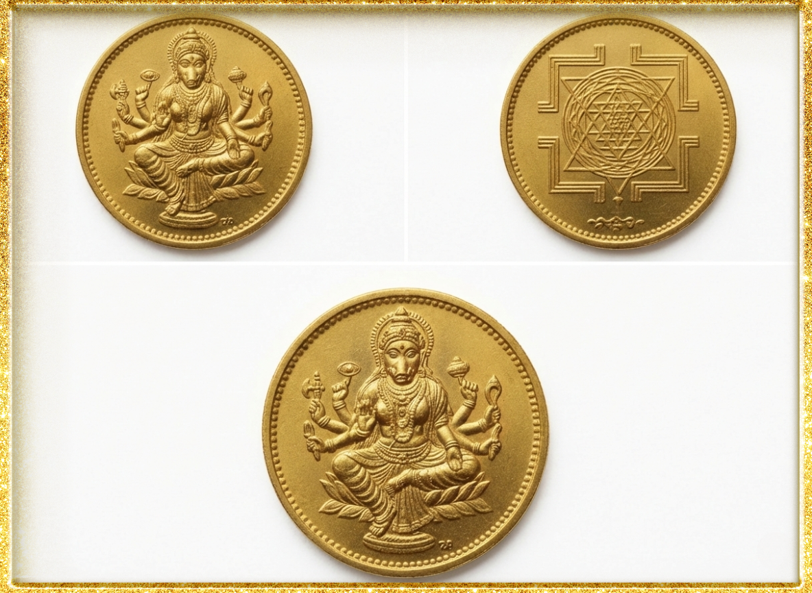 Varahi Coin is a sacred spiritual emblem featuring Goddess Varahi on the front and the Sri Chakra Yantra on the reverse. This dual representation symbolizes the union of protective divine power and cosmic geometric energy. It is designed as a devotional talisman that embodies strength, stability, and auspicious prosperity.