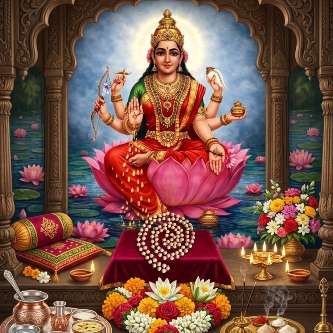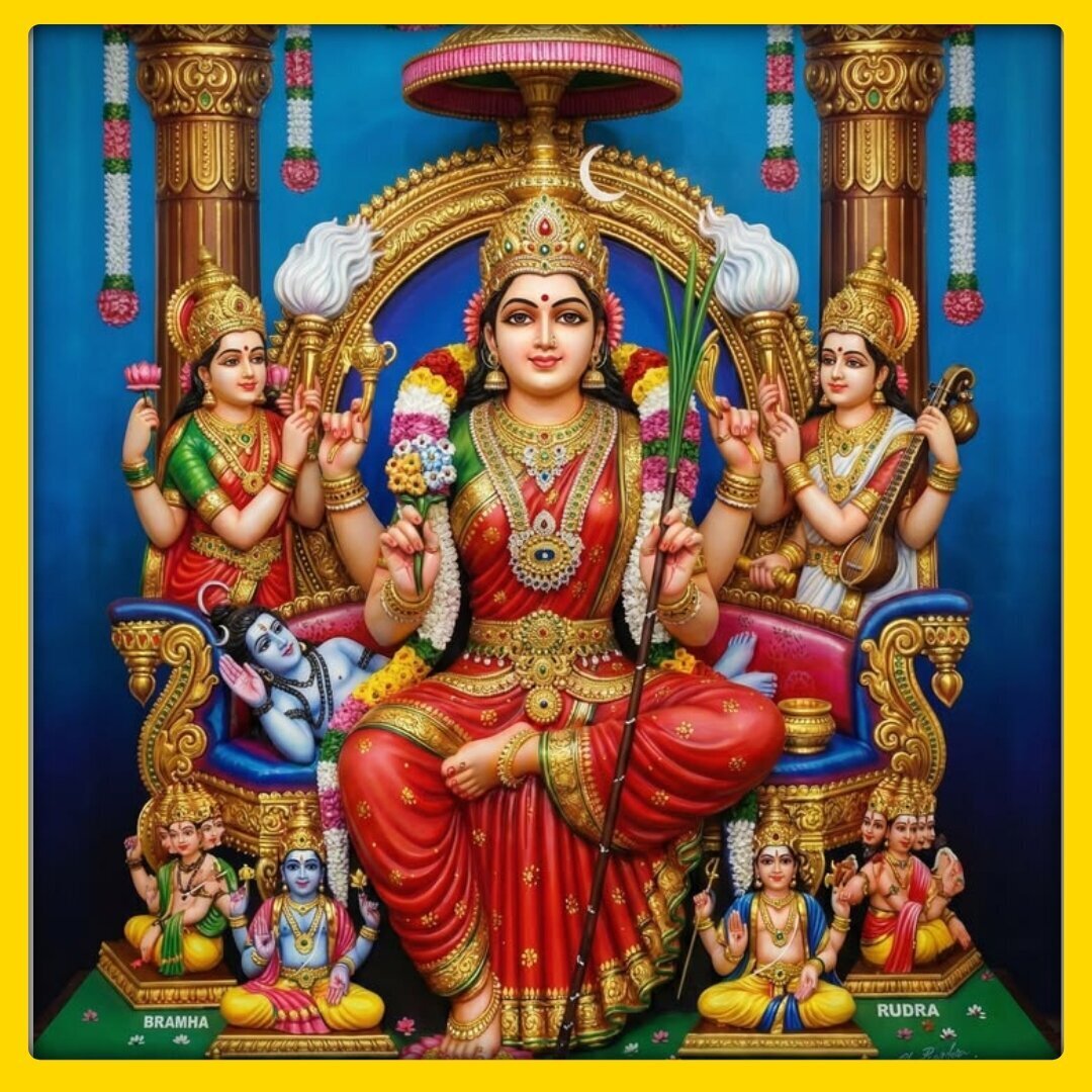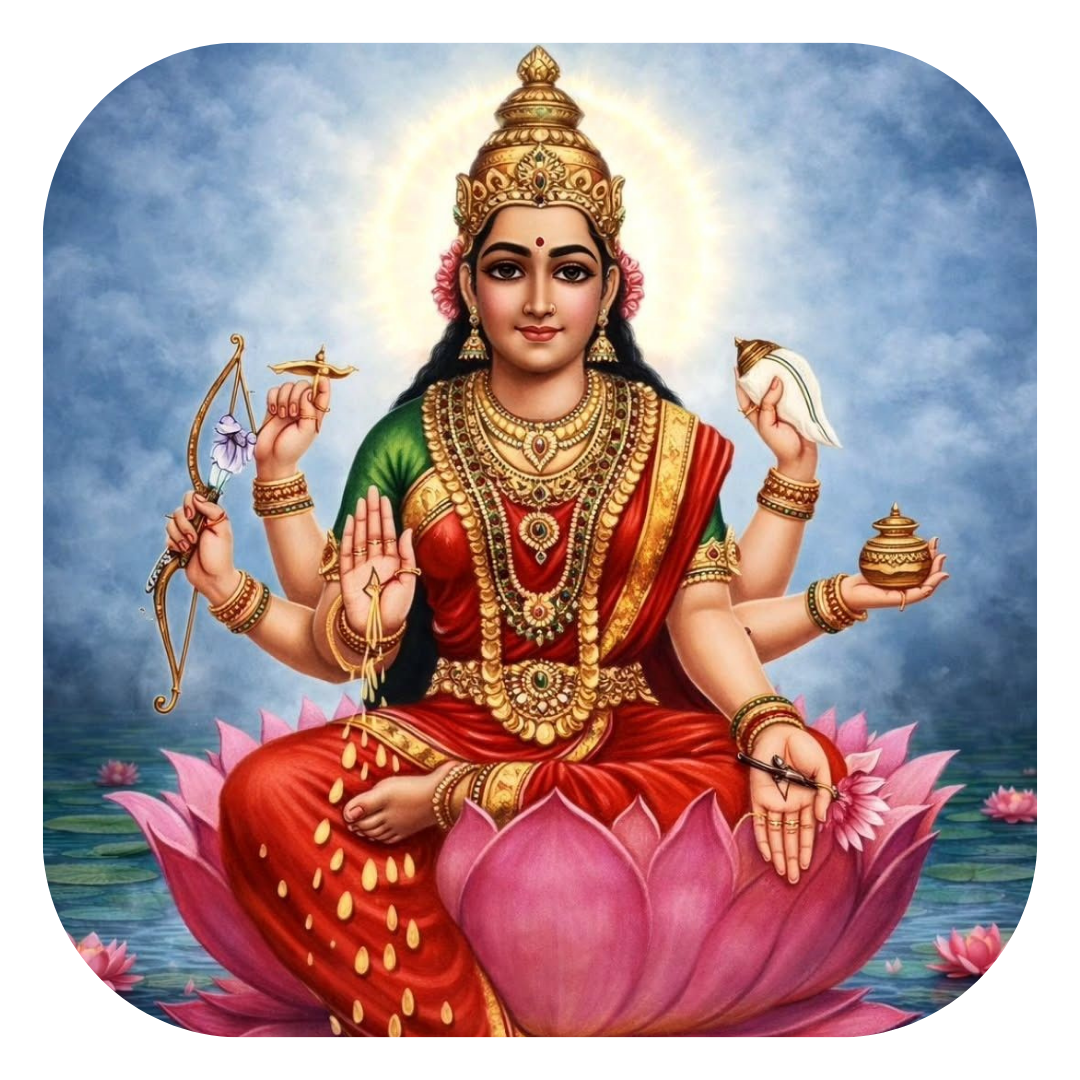 Lalitha Maha Tripurasundari Avahana and Shodasa Upachara Puja is a sacred ritual dedicated to Goddess Lalitha Maha Tripurasundari, the supreme form of the Divine Mother in the Sri Vidya tradition. She is revered as the embodiment of supreme beauty, wisdom, and cosmic power, seated upon the sacred Sri Chakra, symbolizing the entire universe.